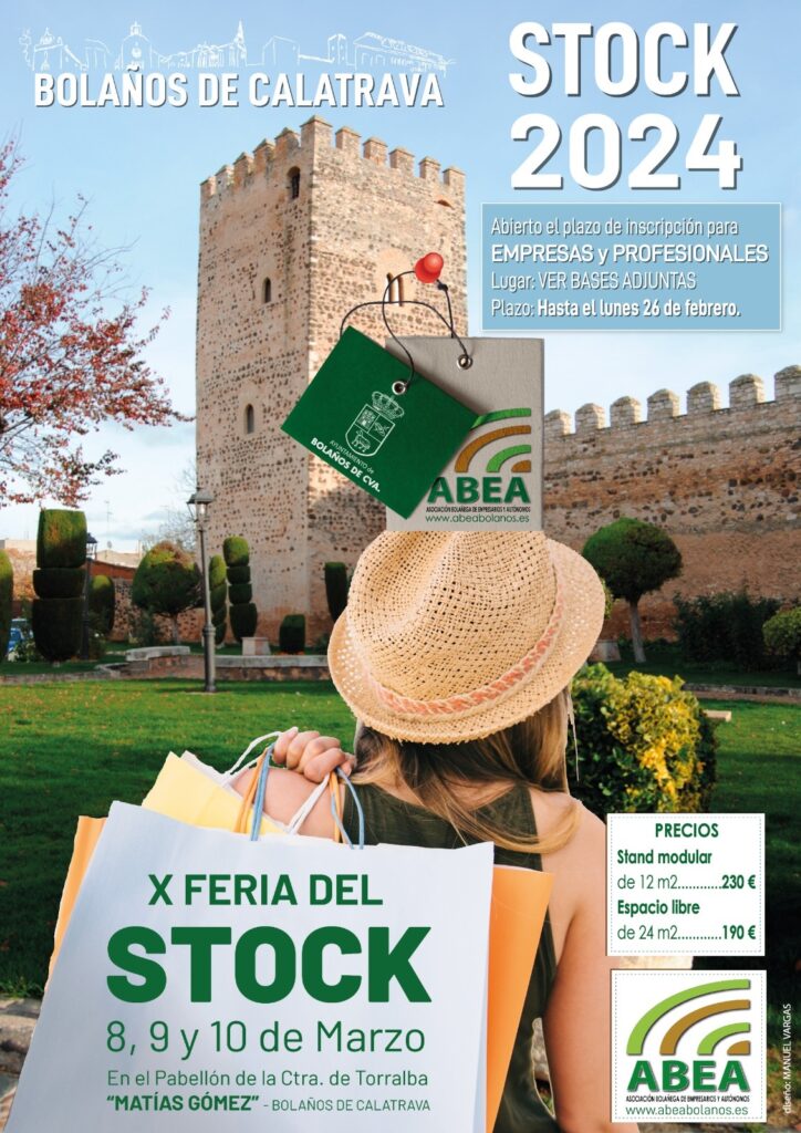 Bolaños Digital.- La Asociación Bolañega de Empresarios y Autónomos y el Ayuntamiento de Bolaños, se complace en anunciar la esperada X Edición de la Feria del Stock, que se llevará a cabo en el Pabellón Matías Gómez de la Carretera de Torralba los días 8, 9 y 10 de marzo.