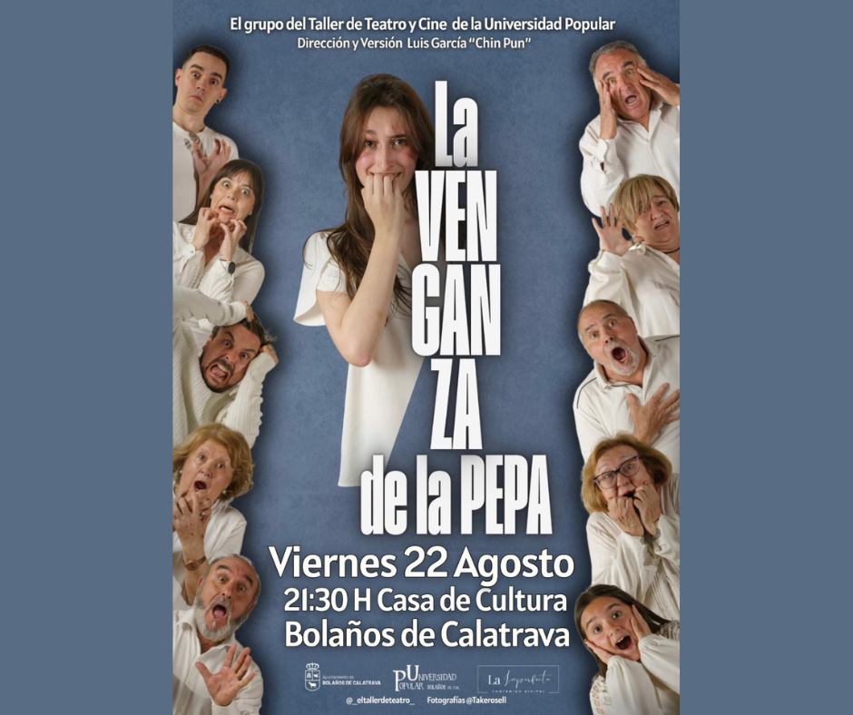 Bolaños Digital.- El próximo 22 de agosto, a las 21:30 horas, la Casa de Cultura de Bolaños acogerá una noche llena de humor, alegría y buen teatro con la esperada vuelta de la comedia «La Venganza de la Pepa», interpretada por el grupo de Teatro y Cine de la Universidad Popular de Bolaños. Tras un éxito rotundo en su estreno en mayo, en el que se colgó el cartel de completo con más de 460 espectadores, esta producción vuelve a sorprender y a divertir a toda la familia.
