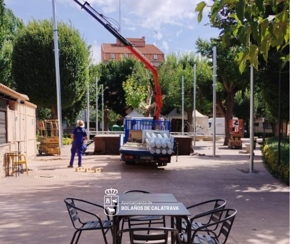 El Ayuntamiento de Bolaños de Calatrava instala nuevas estructuras de sombrillas en el Parque Municipal para mejorar el confort de los vecinos y visitantes