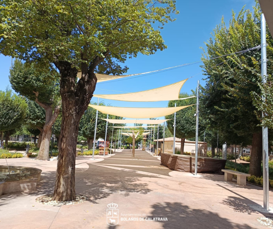 Bolaños Digital.- El Ayuntamiento de Bolaños de Calatrava se complace en anunciar la finalización de un nuevo proyecto de instalación de toldos en el Parque Municipal, con el objetivo de mejorar la experiencia de los vecinos y visitantes, especialmente durante los días de feria, proporcionando sombra y confort en el paseo central del parque.