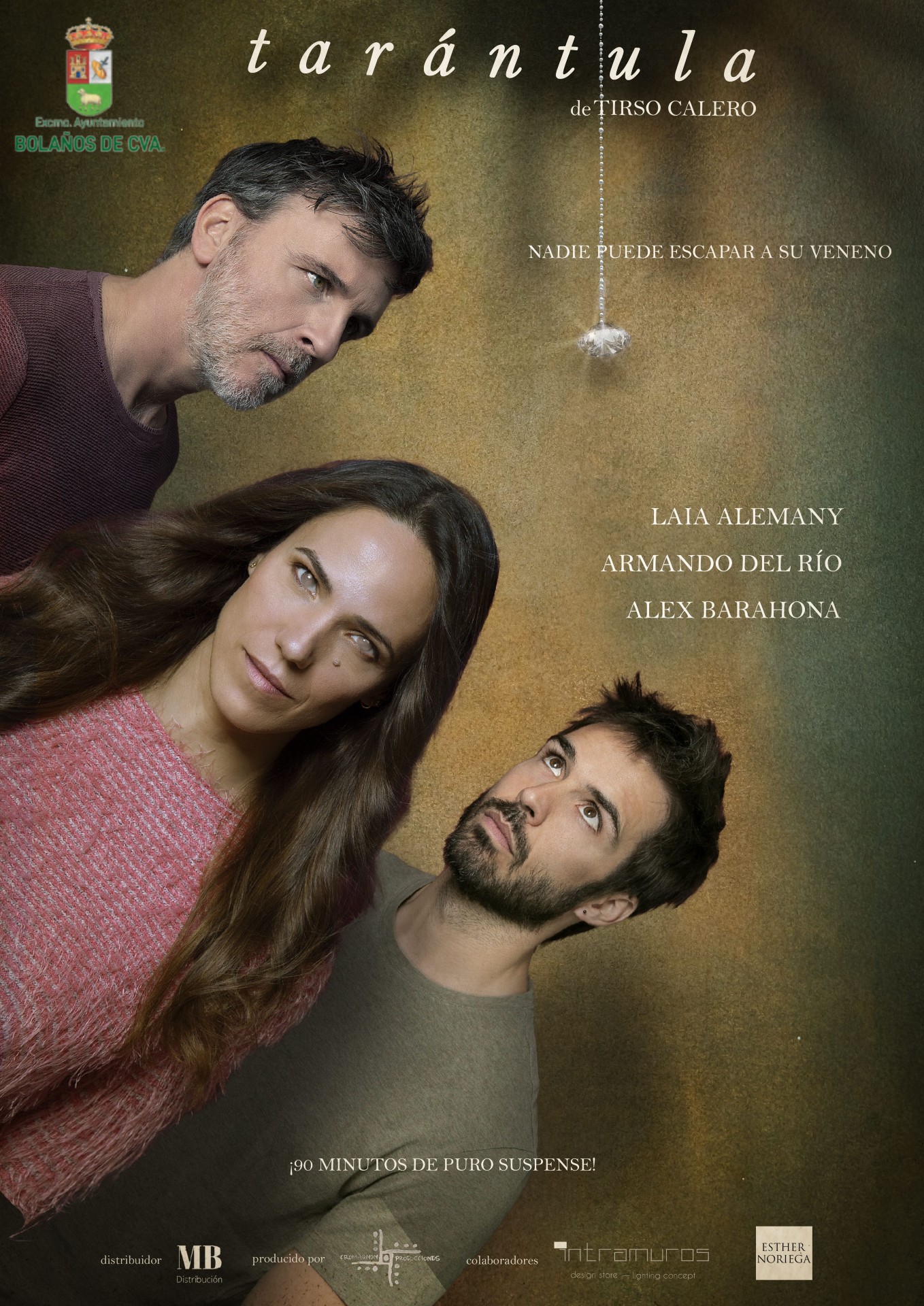 Tras su éxito en el Teatro Reina Victoria de Madrid, la nueva obra teatral de Tirso Calero, “Tarántula”, aterriza ahora en Bolaños de la mano de sus protagonistas Armando del Río, Alex Barahona y Laia Alemany. La escenografía es de Lorena Rubio, las luces de Juanjo Llorens yel sonido de Daniel Peña (Mubox Studio).