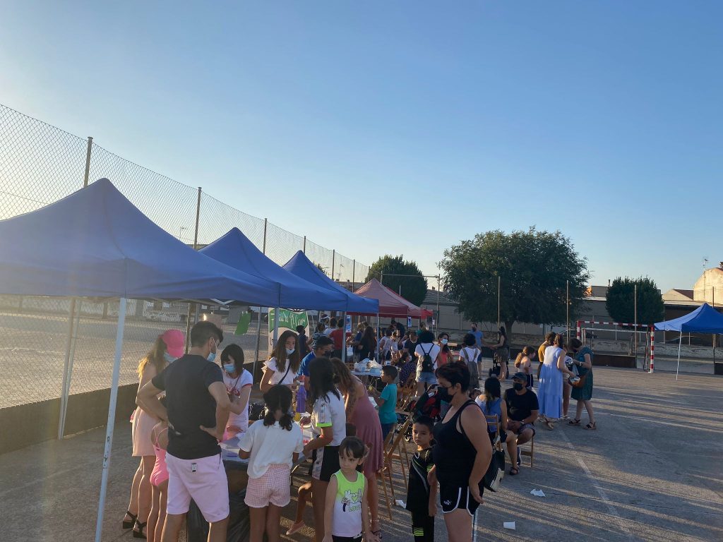 Por otro lado, como ya se ha explicado, los diferentes grupos motores dinamizaron una serie de talleres que para esta jornada fueron de chapas, de pulseras de hilo, de slime y de tatuajes de henna, siendo los dos últimos los más exitosos y concurridos.