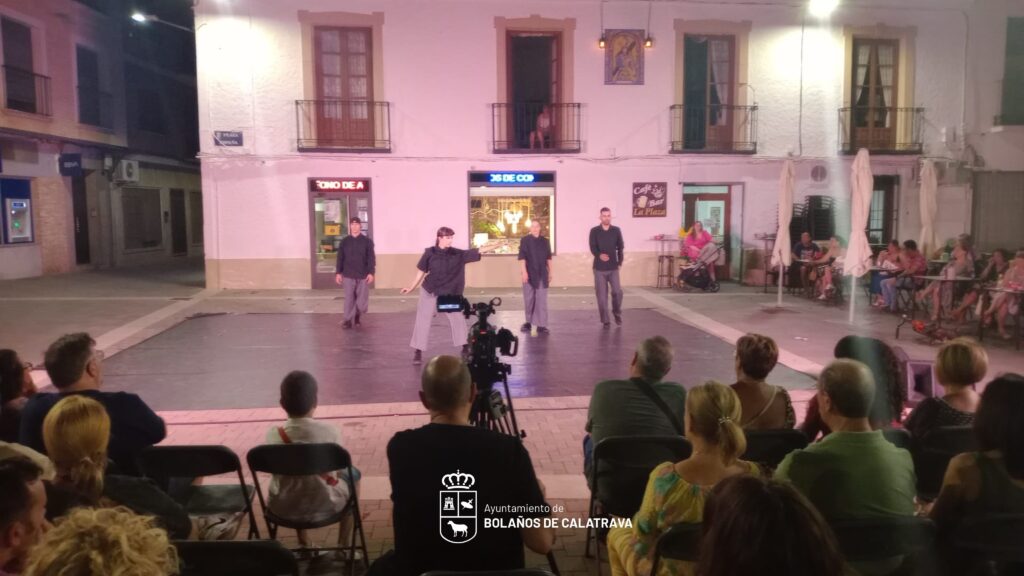 Por la tarde, el festival continuó con actividades innovadoras y culturales. En la Plaza de España, se presentó “Cabinas Literarias”, un proyecto que permitió a los asistentes escuchar poemas y fragmentos literarios de autores como Lorca, Machado y El Quijote, a través de teléfonos, creando una experiencia sensorial y moderna de la poesía clásica. A las 21:15 horas, la Plaza de España se llenó de magia con “Kinesfera”, un espectáculo circense que combinó acrobacias, danza y teatro, cautivando a todos los presentes.