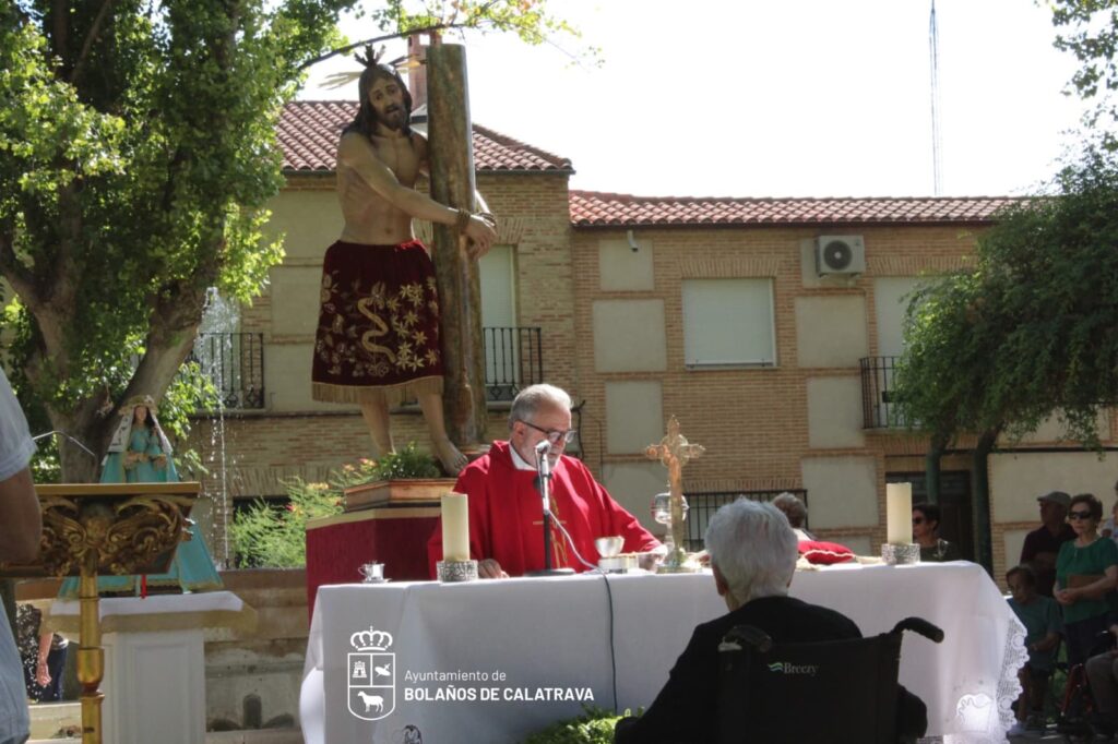 Usuarios de la residencia de mayores, del centro de día, de AFAL, de PADISBOL, así como familiares y vecinos, se han dado cita en la tradicional misa de campaña. Una ceremonia presidida por las imágenes del Cristo de la Columna y la Virgen del Monte, que un año más, anuncia la llegada de los días grandes del municipio bolañego.