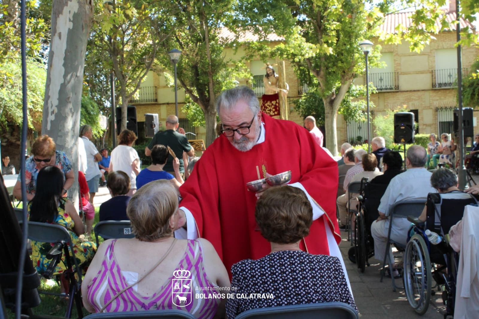 La residencia de mayores de Bolaños de Calatrava disfrutó de una misa de campaña con motivo de la Feria y Fiestas en honor al Cristo de la Columna