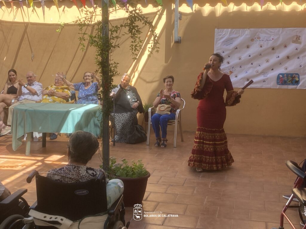 El evento estuvo marcado por un gran baile con actuación en directo, protagonizado por María Dolores de Toro. Lo que hizo aún más especial este evento fue que la artista es hija de una de las residentes de la residencia. María Dolores deleitó a los asistentes con una selección de canciones conocidas y queridas por los mayores, incluyendo pasodobles y temas de flamenco, logrando contagiar de entusiasmo y alegría a todos los presentes.