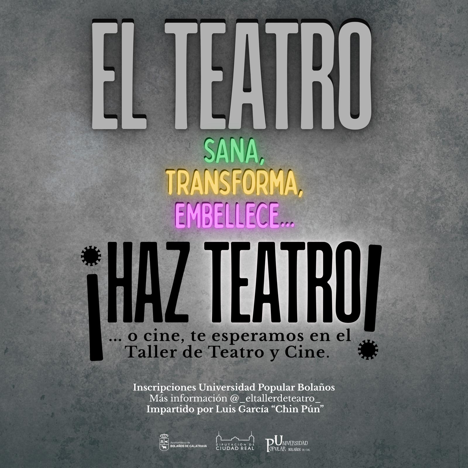 Bolaños Digital.- El Ayuntamiento de Bolaños de Calatrava, a través de su Universidad Popular, inicia una nueva temporada cultural con la reapertura de inscripciones para sus ya consolidados Talleres de Teatro y Cine y el Taller de Artes Escénicas para niños y niñas de 6 a 14 años. Las inscripciones estarán disponibles a partir del 23 de septiembre, con plazas limitadas.