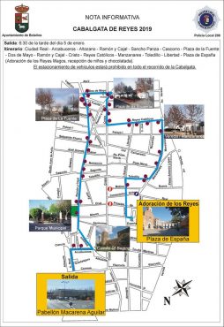 Se ruega a los conductores de los vehículos estacionados en las calles afectadas que procedan a su retirada antes de las 16:00 horas para permitir que sus Majestades los Reyes Magos puedan llegar a todas las casas de Bolaños a repartir regalos.