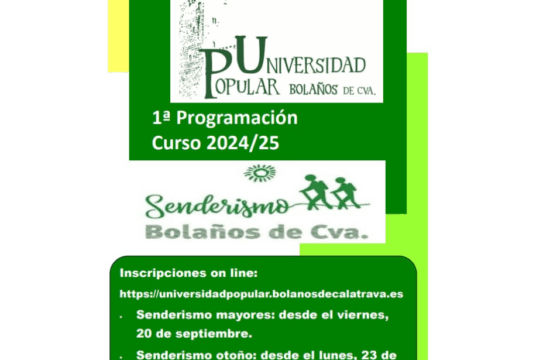 La Universidad Popular de Bolaños abre el plazo de inscripción para sus cursos de senderismo 2025/2026 El inicio del plazo de inscripción será el 19 de septiembre para el senderismo de mayores y el 22…