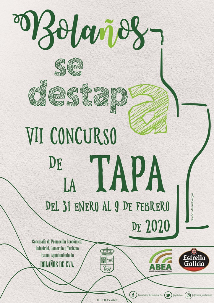 Se establecen dos categorías de concurso: una de tapa libre, que permitirá el uso de cualquier tipo de ingrediente, y otra de tapa con productos típicos de Bolaños en los que se valorará la aparición de alimentos como carne de caza, hortalizas o queso manchego. Las propuestas deberán ser inéditas y ajustarse a un rango de precios que irá desde los 3 euros de la tapa junto a un refresco, cerveza o vino, hasta los 1,50 euros de la tapa sin ningún otro acompañamiento.